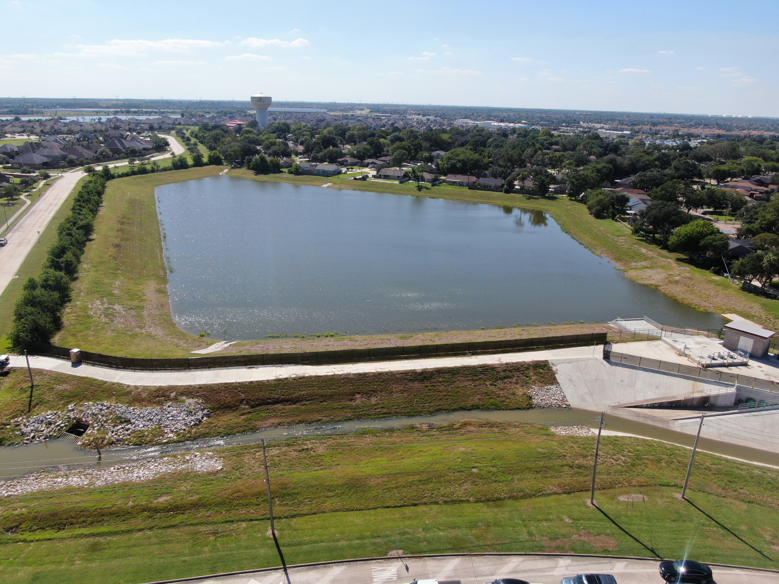 This project phase adds capacity to the current detention pond by deepening and adding a dedicated pump station to pump storm water out of the pond and into Gum Bayou after a major rainfall event.