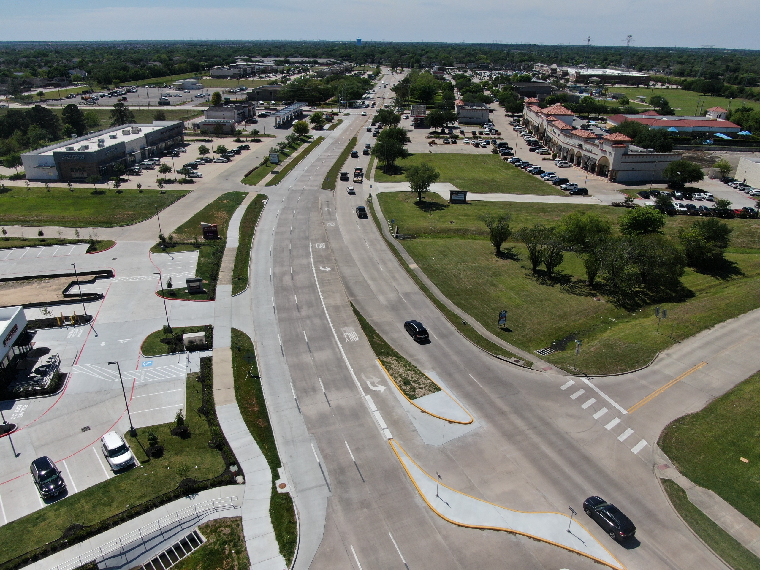 The project consisted of the addition of a right-turn lane to the existing pavement along League City Parkway, from west of Butler Road to east of Calder Road. The project spanned approximately 0.38 miles, including the construction of 12-foot right turn lane, traffic signal modifications with intersection sidewalk improvements, and median modifications to an S-median.